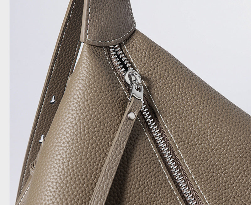 Hochwertiges Material und klassisches Design: Diese Damen Umhängetasche ist aus echtem Leder gefertigt und überzeugt durch ihre hervorragende Haptik. Das schlichte, einfarbige Design ohne überflüssige Verzierungen unterstreicht den modernen, minimalistischen Stil. Erhältlich in Khaki und Schwarz – zwei klassische, vielseitig kombinierbare Farben, die sich mühelos zu verschiedensten Outfits tragen lassen.