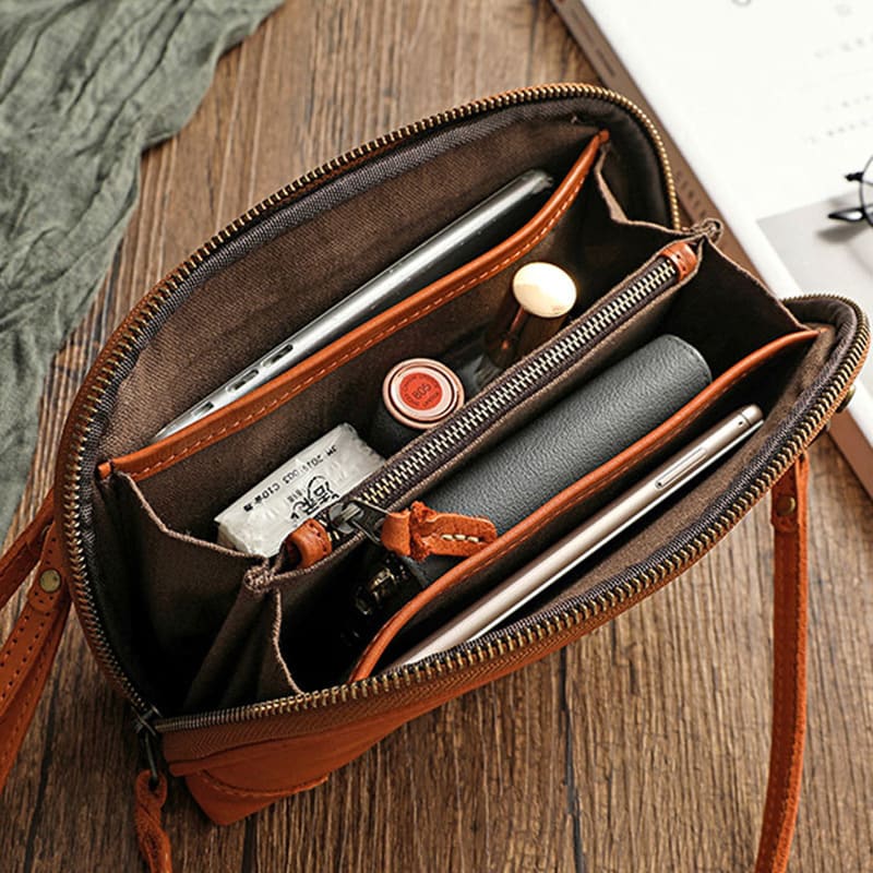 Vielseitiges Design: Trotz ihrer kompakten Größe bietet die Tasche überraschend viel Stauraum. Das Hauptfach ist mit einem Reißverschluss versehen, der Ihre Wertsachen sicher schützt. Im Inneren befinden sich ein Reißverschlussfach und zwei Steckfächer – ideal für Handy, Geldbörse, Schlüssel und andere Alltagsgegenstände, die so ordentlich verstaut werden können.