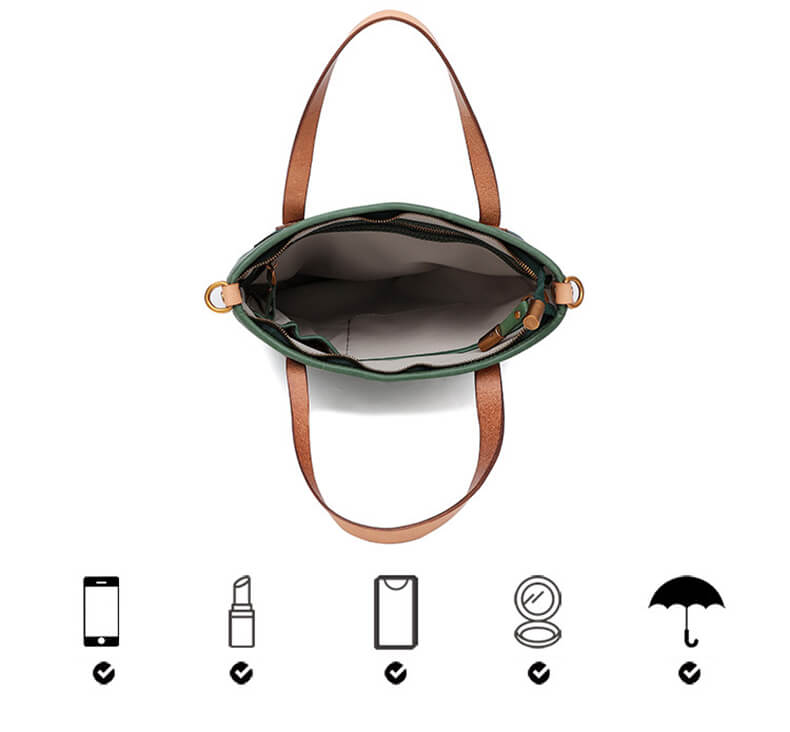 Hochwertiges Leder: Aus erstklassigem, hochwertigem Leder gefertigt, hat die Oberfläche einen glänzenden und glatten Finish, der sich angenehm und weich anfühlt. Leder ist nicht nur langlebig und widerstandsfähig, sondern auch atmungsaktiv und hautfreundlich, sodass die Tasche auch bei längerem Tragen stets komfortabel bleibt.