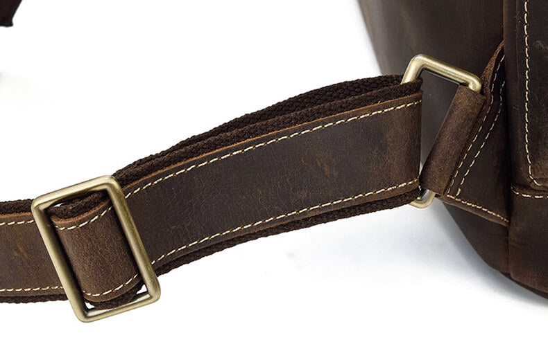 Komfortabler, verstellbarer Schultergurt: Der Schultergurt besteht ebenfalls aus Echtleder und passt perfekt zum Gesamtstil des Rucksacks. Zudem ist der Gurt in der Länge verstellbar, sodass er sich an verschiedene Körpergrößen anpasst. Egal, ob groß oder klein, dick oder dünn, Sie können die für Sie angenehmste Trageweise finden und ein komfortables Tragegefühl genießen.