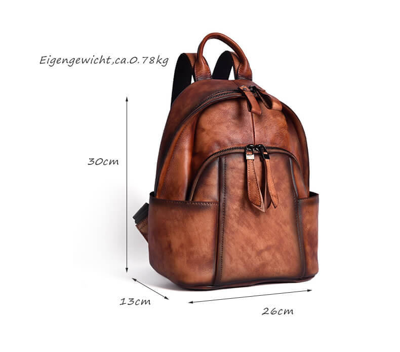 Das ausgewählte Leder-Material wurde einer speziellen Vintage-Behandlung unterzogen, die dem Rucksack eine einzigartige Textur und Ausstrahlung verleiht und die Spuren der Zeit widerspiegelt. Bei jeder Berührung spürt man die Wärme und den Komfort der Natur, was ihn zu einem unwiderstehlichen Begleiter macht. Ob für den täglichen Arbeitsweg oder für ein Wochenende unterwegs – dieser Damen-Leder-Rucksack ist Ihr unverzichtbares modisches Accessoire.