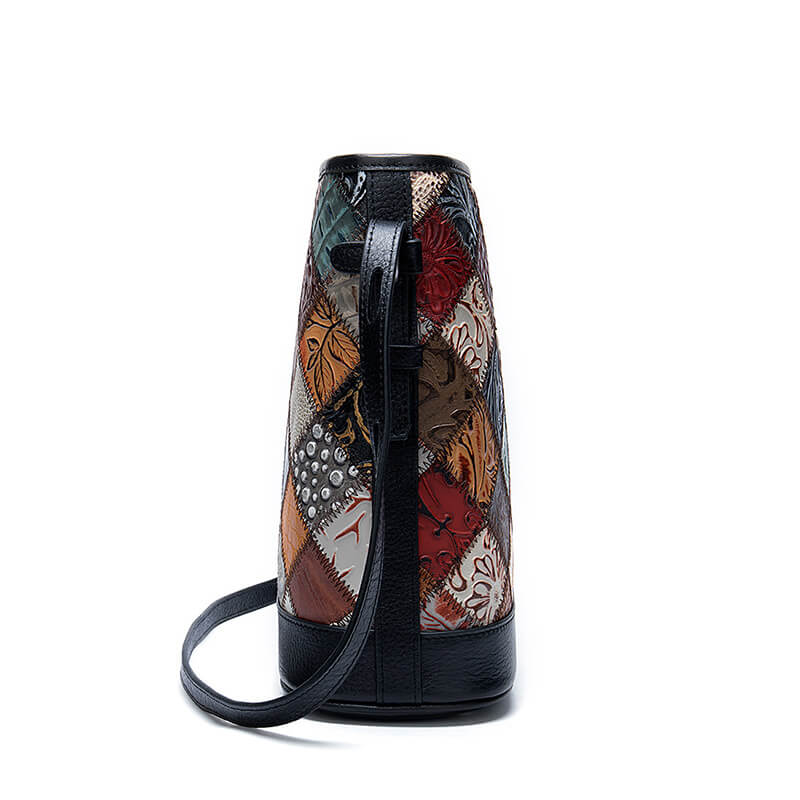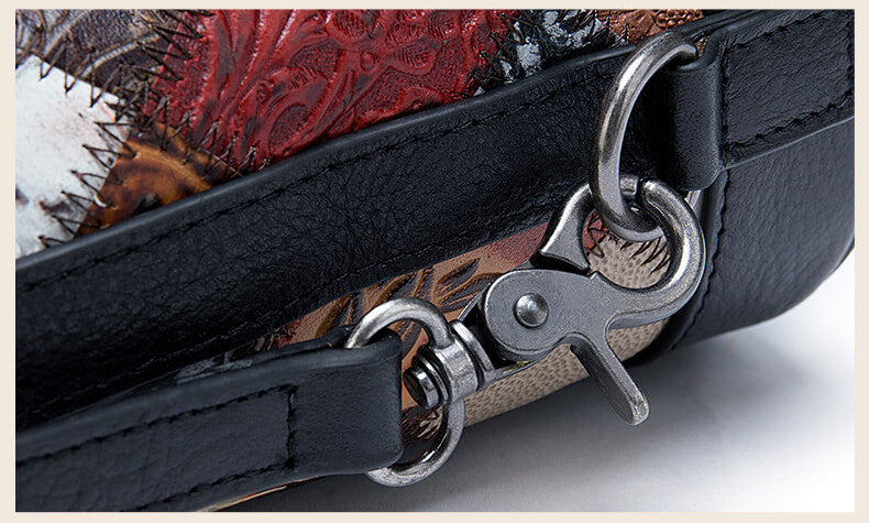 Vintage bunte Umhängetasche Damen Patchwork Leder mit Reißverschluss