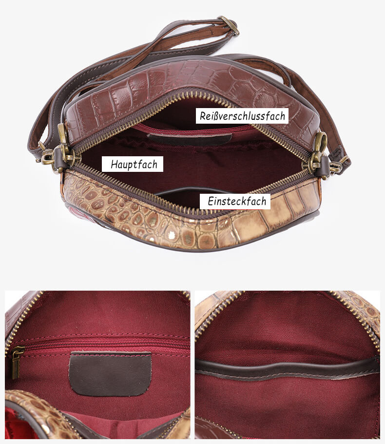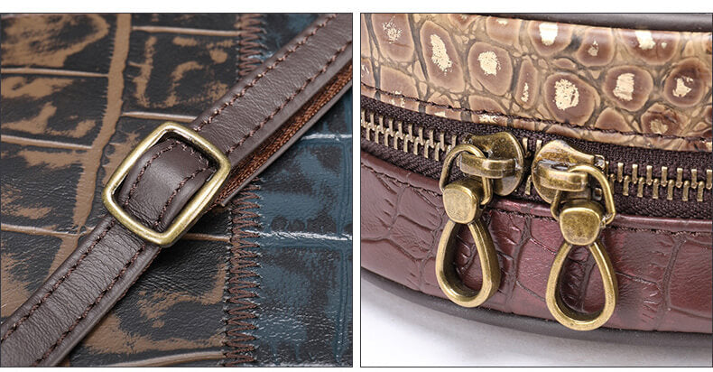 Vintage runde Damen Umhängetasche bunt Leder Patchwork für Freizeit