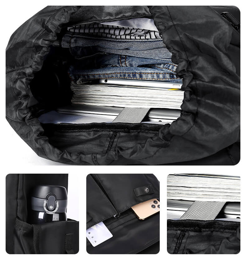 wasserdichter Rucksack Herren aus Nylon für Bergsteigen Universität mit Brustgurt Kordelzug