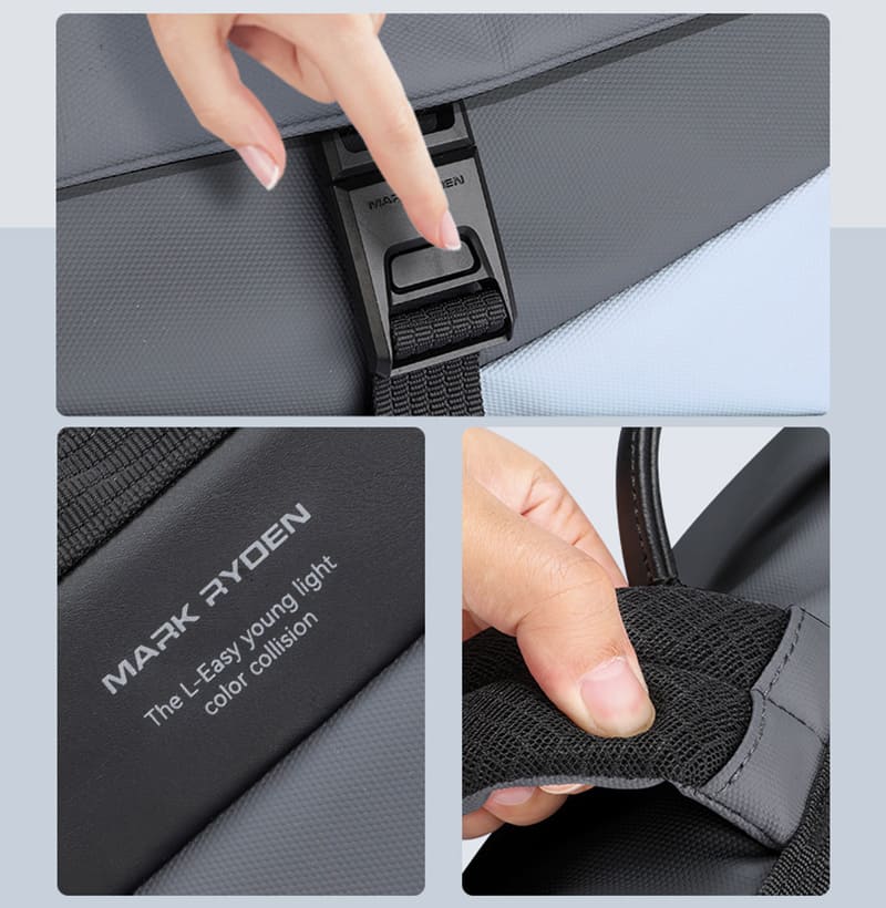 Modernes und schlichtes Design: Der Rucksack besticht durch eine dezente Kombination aus Grau und Hellblau. Die klaren Linien verleihen ihm eine stilvolle Silhouette, die sich mühelos in verschiedene Anlässe einfügt und die maskuline Ausstrahlung unterstreicht.